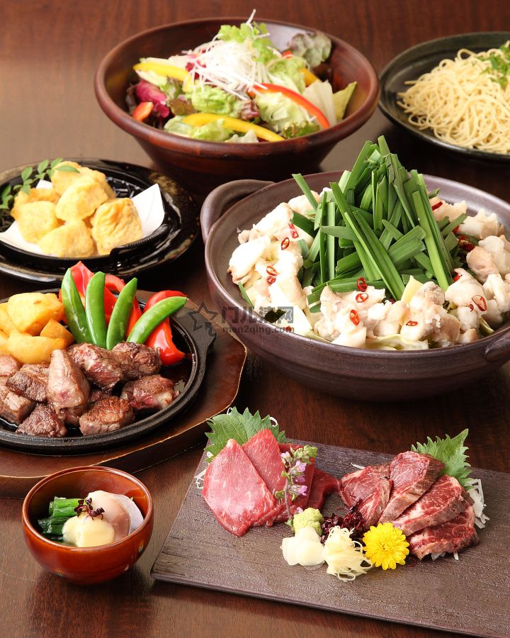 汇集马肉刺身,骨髓天妇罗,鸡肉丸串烧,九州名物肥肠火锅等7种马刺屋MASASHI人气料理的超值套餐。